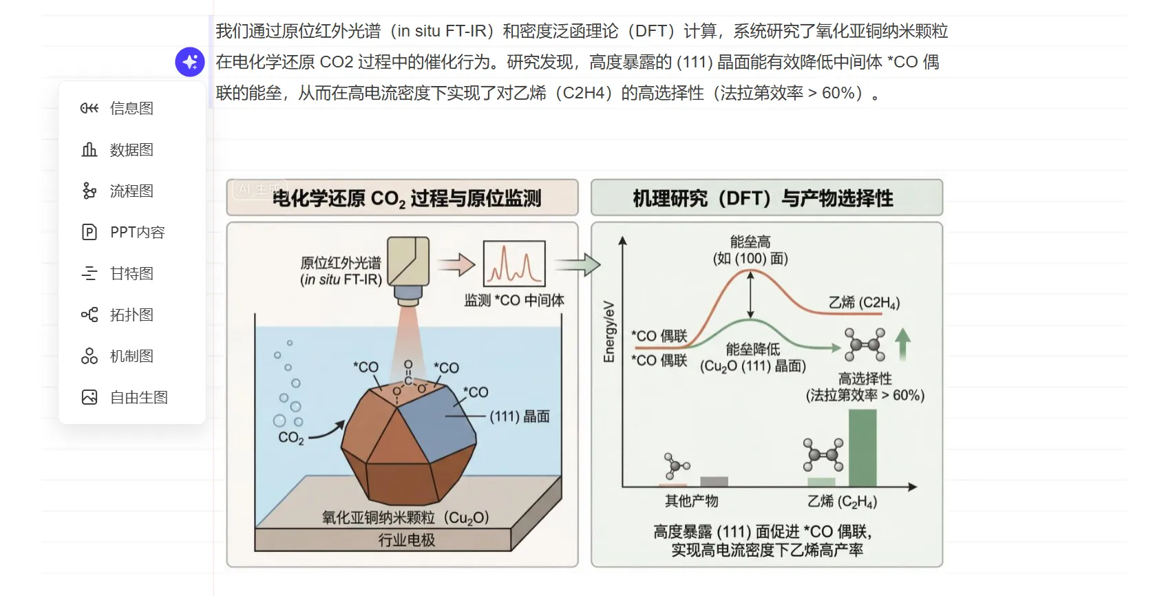 - Accurate data visualization with polished design: AI interprets your data and text structure to generate appropriate figures. Supporting both 2D and 3D styles, automatically optimizing color schemes, and ensuring your illustrations look professional for your disciplines and use cases.