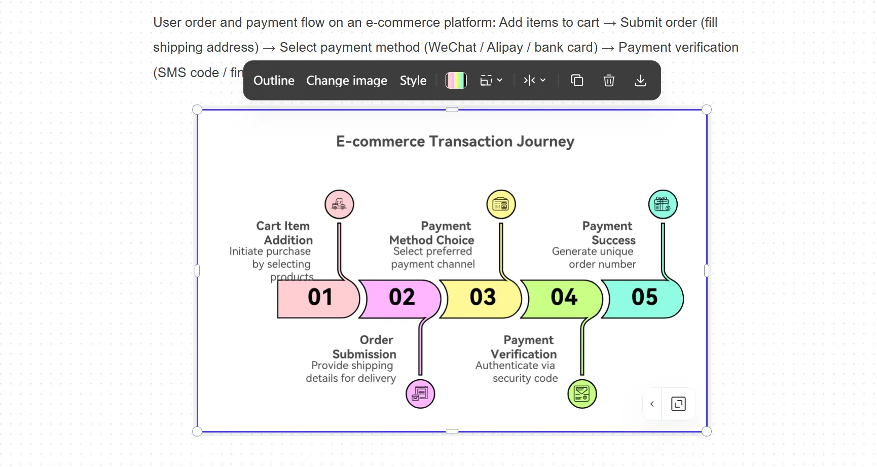 PicDoc supports online interactive editing. The node sequence is incorrect? Just drag and drop adjustment; One-click font size switching. No need to write a single line of code for all operations.