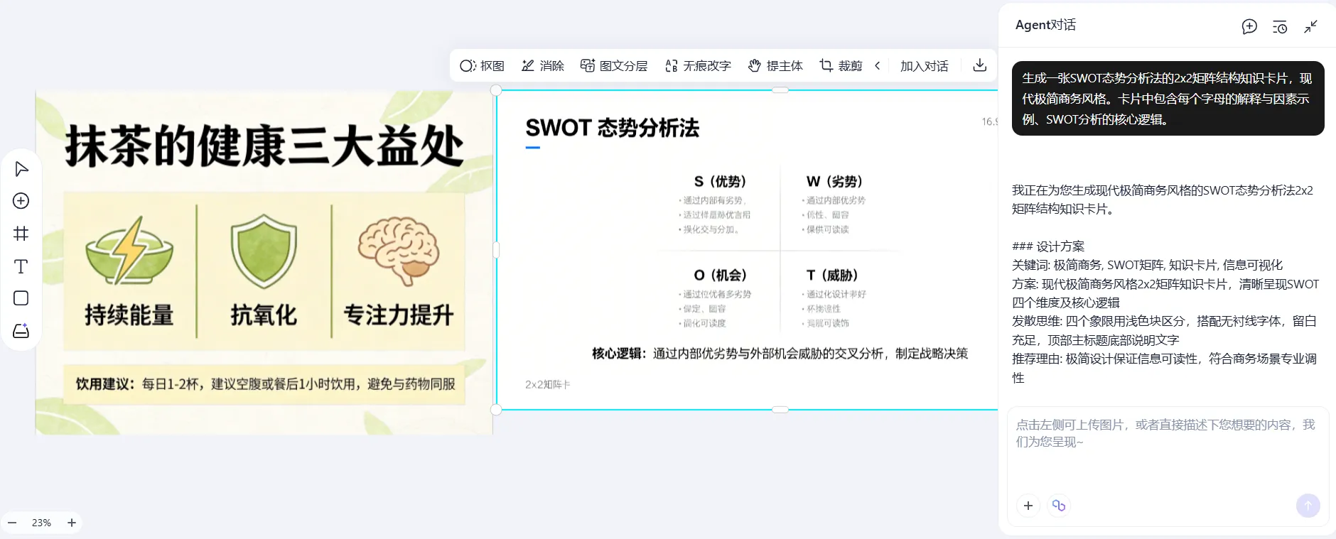 - Flexible Customization: After generating a knowledge card, users can remove backgrounds, erase elements, crop images, and adjust text, fonts, colors, and layouts for personalized design.