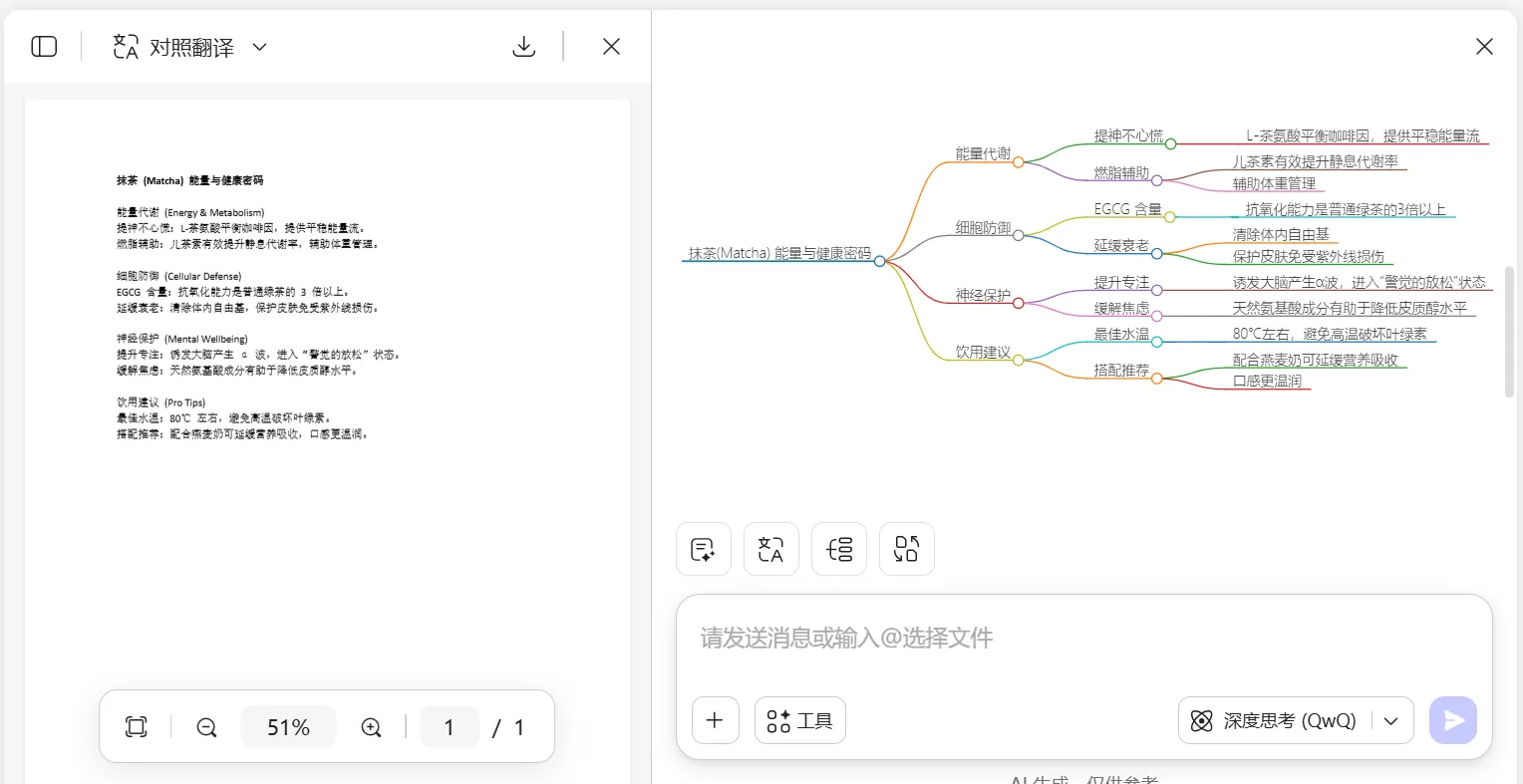 Limitations: Limited use cases. Only supports PDFs to mind maps and cannot process plain text or Word files. Also struggles with scanned PDFs, making its functionality relatively narrow.
