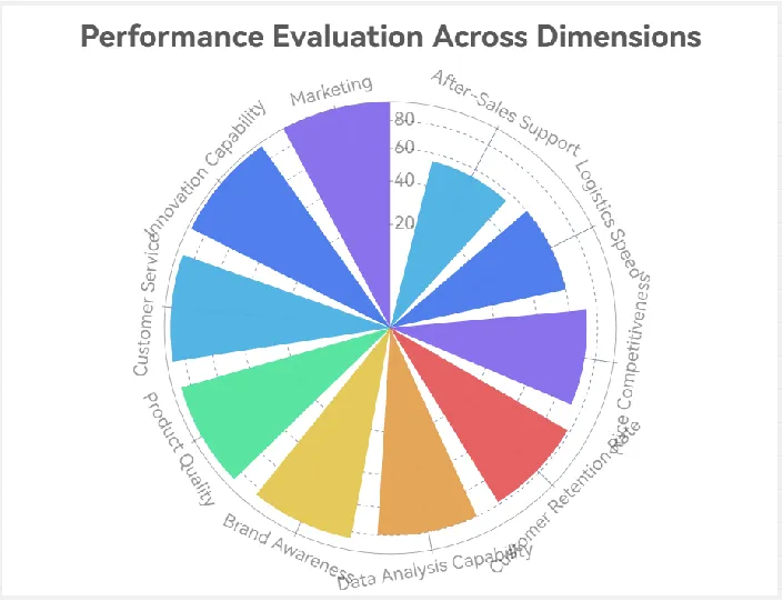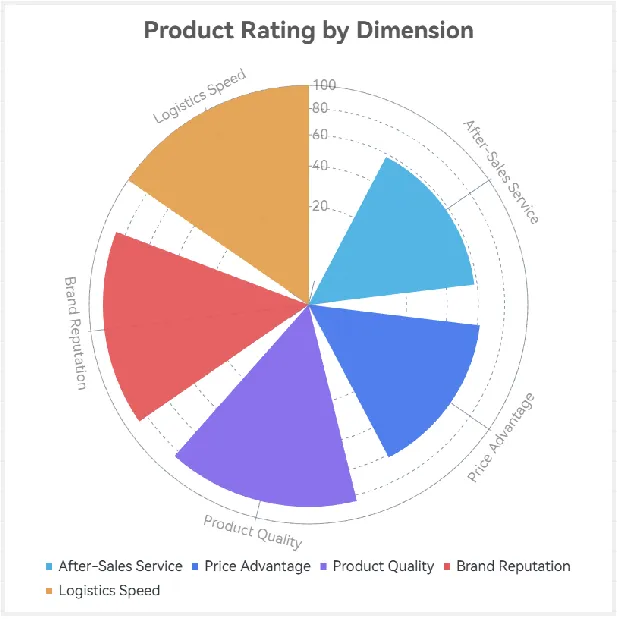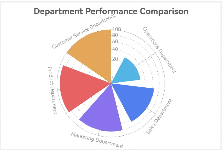 Compared to bar charts, rose charts are especially effective when working with five or more dimensions—such as performance across eight departments or multi-factor product evaluations. They allow users to compare multiple variables clearly within a compact visual space, making them particularly suitable for the following scenarios.