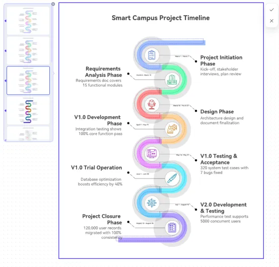 A visual career timeline allows recruiters, mentors, or managers to immediately grasp your growth story. It also provides self-insight, helping you see your development rhythm, identify skills gained, and make informed decisions about the next steps. Abstracted future goals, such as "three-year plan," are made concrete and actionable through visualization. Use AI timeline tools and make your career story more engaging, structured, and persuasive.