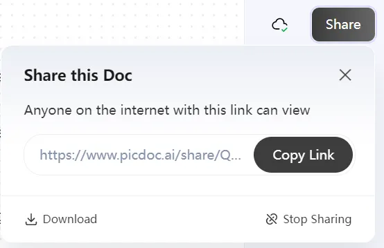 - Use PicDoc’s “One-Click Share” feature to generate a link, so team members can view the charts online. This really boosts collaboration efficiency.