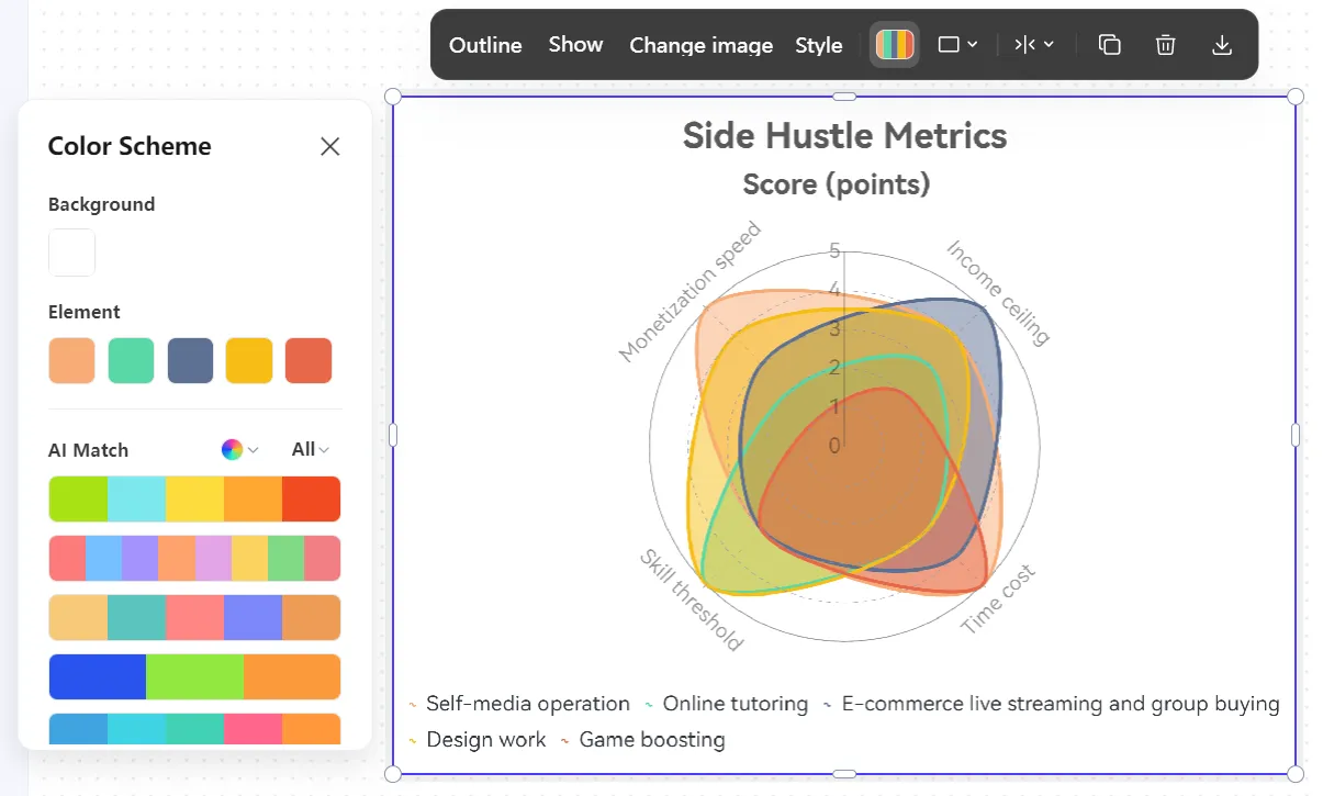 AI intelligently identifies and extracts your data, then pairs it with the most suitable chart type. It also automatically optimizes the chart layout, so data categories are clear at a glance.