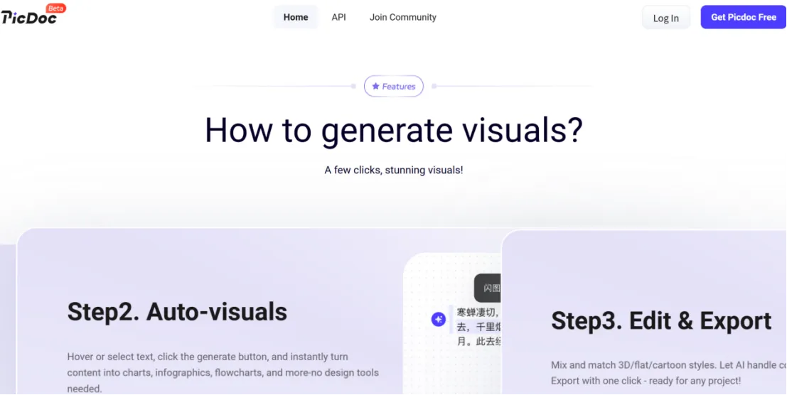PicDoc, as a revolutionary AI-driven text visualization tool, its core mission is to “empower everyone, let ideas leap onto the map”. PicDoc is dedicated to breaking the shackles of traditional design, transforming the magic of text into a visual feast in a zero-threshold and highly efficient way, so that communication is boundless and creativity is unlimited. As an AI-driven zero-threshold text visualization tool, PicDoc focuses on the instant conversion of text to visual content, whether it's an esoteric concept, cumbersome data, or an abstract idea, just simply type in the text or textual content, and AI can quickly convert it into intuitive and easy-to-understand visual graphs/diagrams, so that the complex information instantly becomes clear and understandable, and greatly improves communication efficiency.