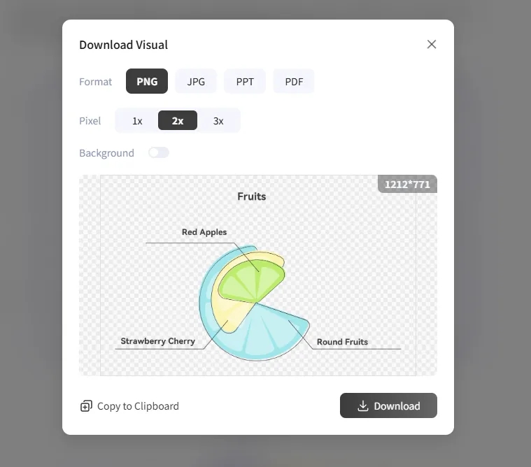 4.Edit labels, colors, or layout if needed, then export in PNG, JPG, PPT, or PDF format.