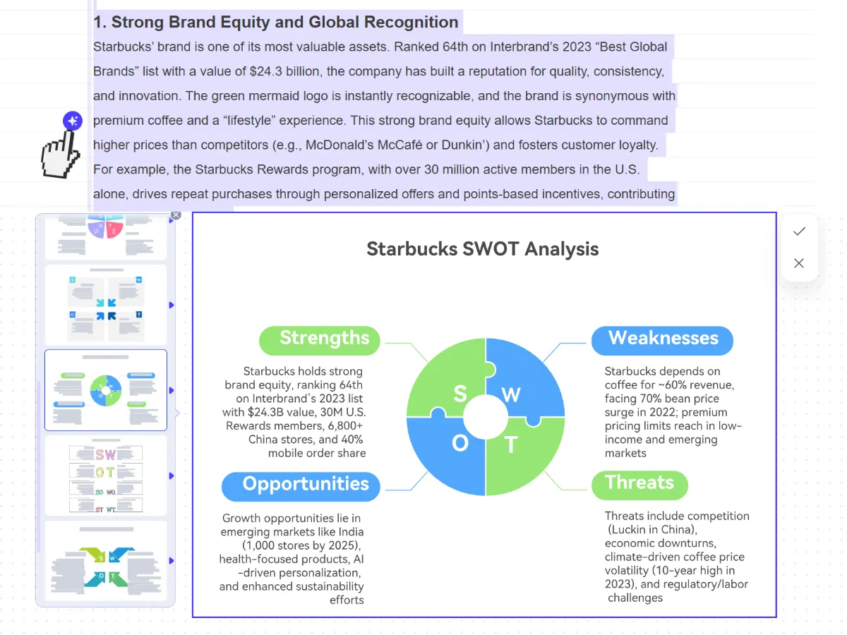 If you are looking for a professional and efficient tool to create SWOT analysis charts, PicDoc is certainly the best choice. You can easily create standardized SWOT analysis charts, facilitate in-depth strategy deduction and dynamic iterative optimization, and accurately meet your very specific needs. Click "Create SWOT Analysis Chart" right away, and go to the official website of PicDoc to start the efficient procedure of creating professional-level SWOT analysis charts in one minute!
