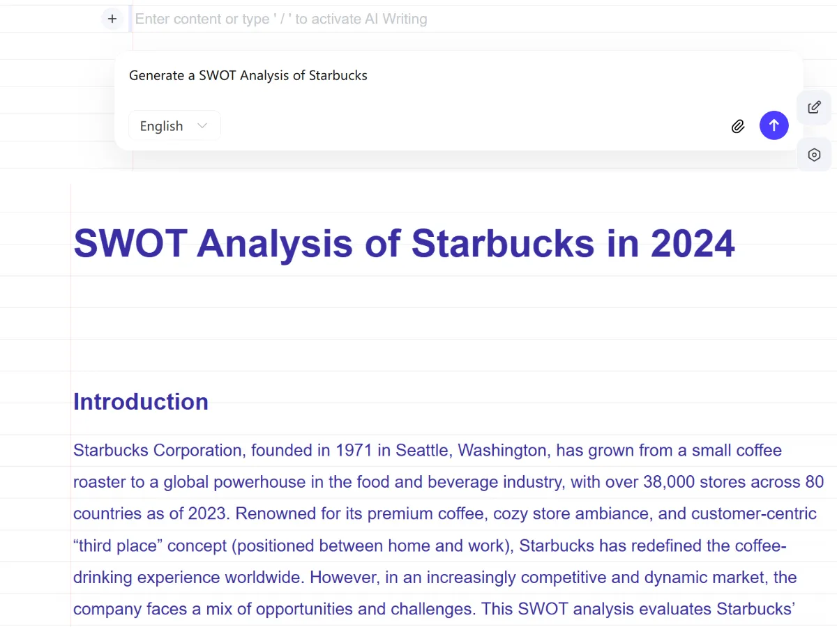 For example, by entering "SWOT Analysis of a Certain Product", PicDoc will auto-write and organize the content.
