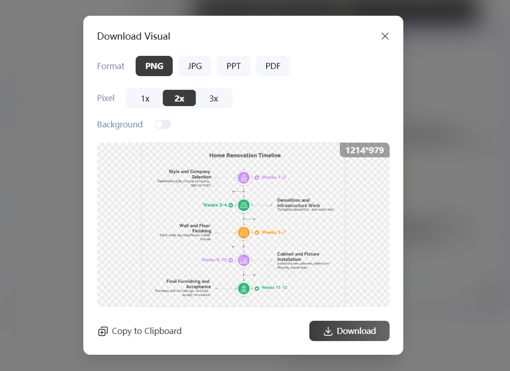 Articles can be exported with one click in PDF and PNG. Timelinesthough, however, can be exported in various formats such as PDF, PPT, JPG, and PNG. Exported timelinesthough are easily embeddable into PPT presentation slides or Word documents for reuse. You can even have an online view link using PicDoc's "Share Link" feature. Team members can open the link directly on computers, mobile phones, or tablets to see the latest timelines and article content without login details.