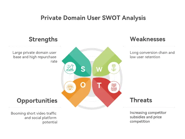 At the end of every year, the operations team goes through "next year's strategy planning," which includes user growth, market expansion, product optimization, etc. In this process, SWOT analysis is indispensable. Traditionally, operations people have to manually list the key points for each dimension, then spend a lot of time converting them into charts. However, the design details of the chart often become a headache: clashing colors, chaotic layouts, and ultimately, the final presentation suffers.