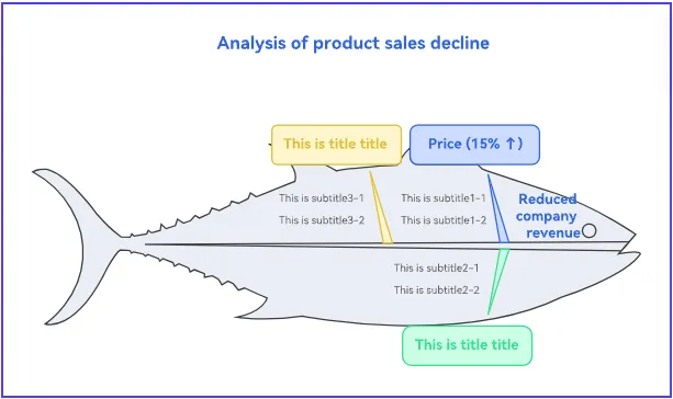 Les diagrammes en os de poisson sont couramment utilisés dans l'analyse de problèmes (par exemple, le diagnostic de problèmes de produit, l'analyse des retards de projet), les discussions d'équipe (par exemple, les rétrospectives, l'optimisation des solutions), les devoirs de cours (par exemple, l'analyse de gestion, les exercices de contrôle de qualité) et les rapports (par exemple, les examens des problèmes de département, les autopsies de projet). Un rappel important : Si vous avez besoin de présenter un flux de processus ou une séquence, un diagramme de flux est plus approprié. Un diagramme en os de poisson ne doit être utilisé que lorsque vous voulez décomposer les causes d'un problème.