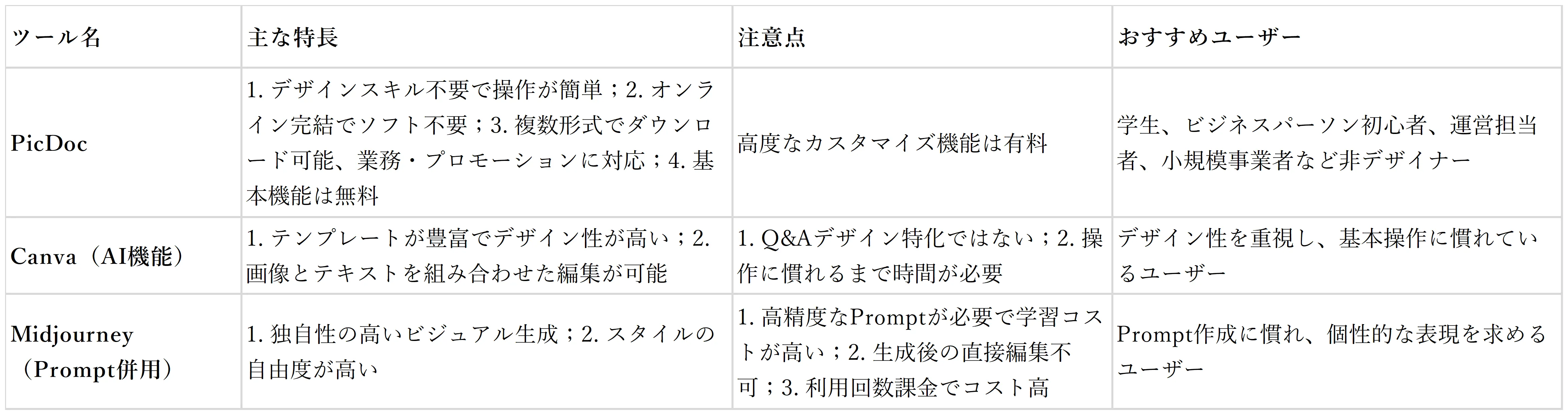 四、ツール別比較:主要Q&Aデザイン生成AIツール3選