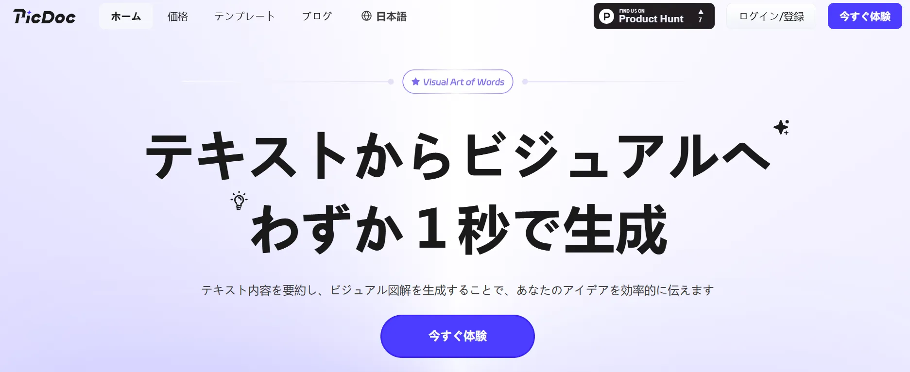 もしリスト型のインフォグラフィックの作成に悩んでいるなら、ぜひPicDocを試してみてください。テキストからの図解生成対応しており、初心者でもすぐに使い始められるので、インフォグラフィック作成はもう負担になりません。まずは実際に触ってみて、作業効率の違いを体感してみましょう。