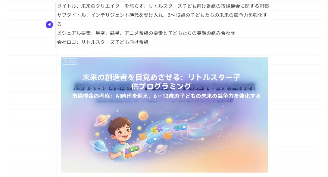 限界:AI生成能力は弱く、基本的なテキスト骨子とシンプルなレイアウトしか生成できず、データグラフや複雑なレイアウトを含む高品質なスライドを直接生成することはできません。レイアウトスタイルが単一的で美的感覚に欠け、正式な報告に使用するには手動で配色を調整し、アイコンを挿入する必要があります。テキストから直接、視覚的に豊かなスライドを生成することはサポートしておらず、その後の手動編集に依存するため、効率向上には限界があります。複雑なテキストではレイアウトが乱れる可能性があります。