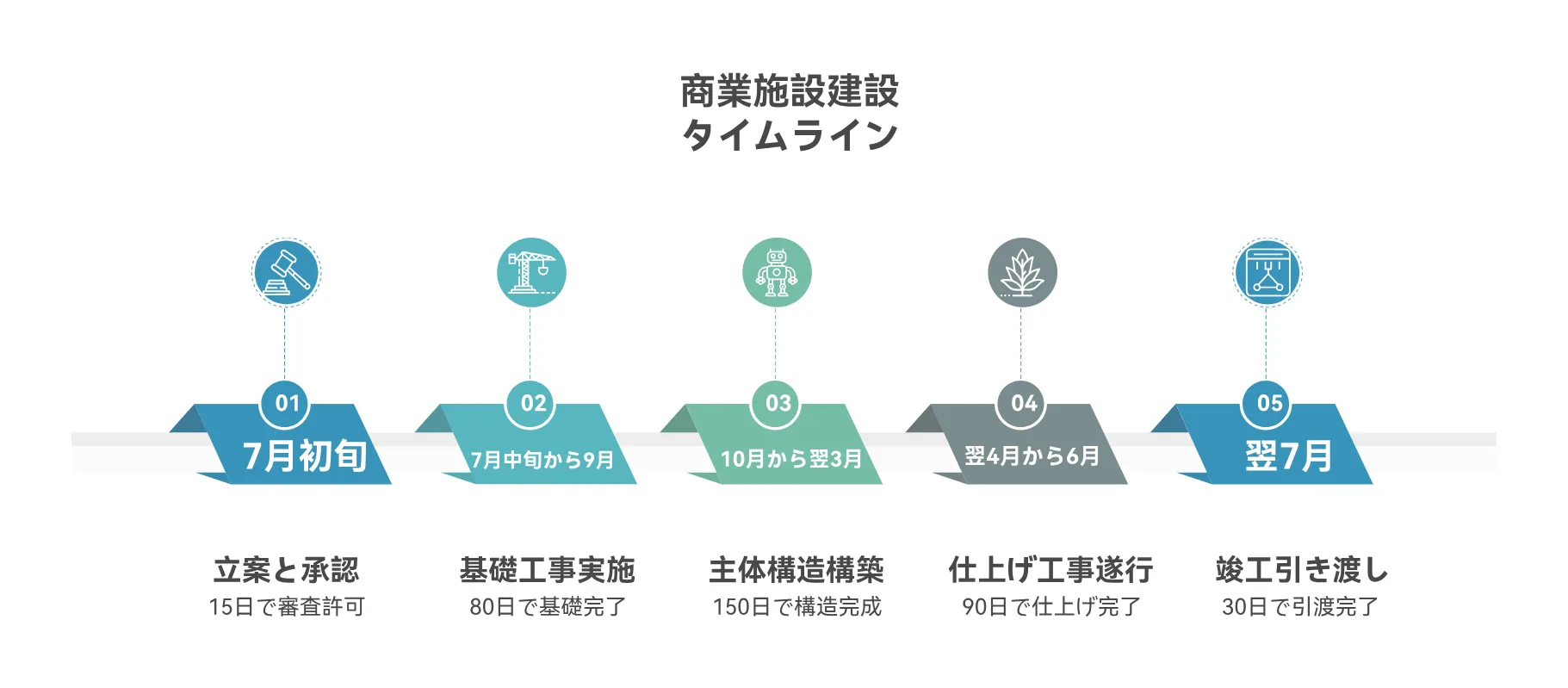 翌7月 竣工・引き渡し(30日/消防検査・品質検査)」