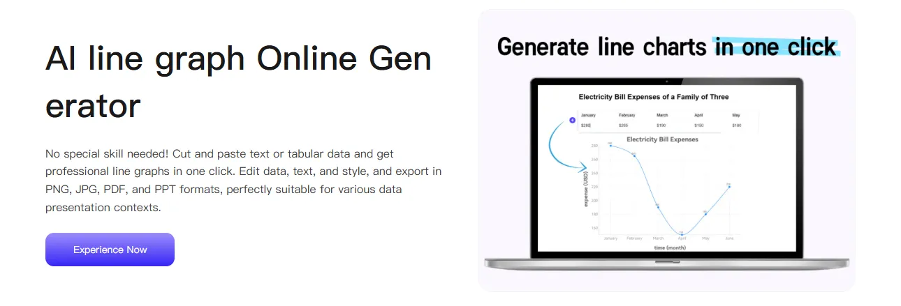 使用AI生成折线圖可幫助您完全擺脫手動計算坐標和無休止調整線條樣式的痛苦手動計算坐標和無休止調整線條樣式。無論您是追蹤月度銷售額、記錄實驗數據還是分析用戶增長,只需粘貼文本,幾秒鐘內即可獲得乾淨、專業的折線圖—隨時可用於報告或作業中。