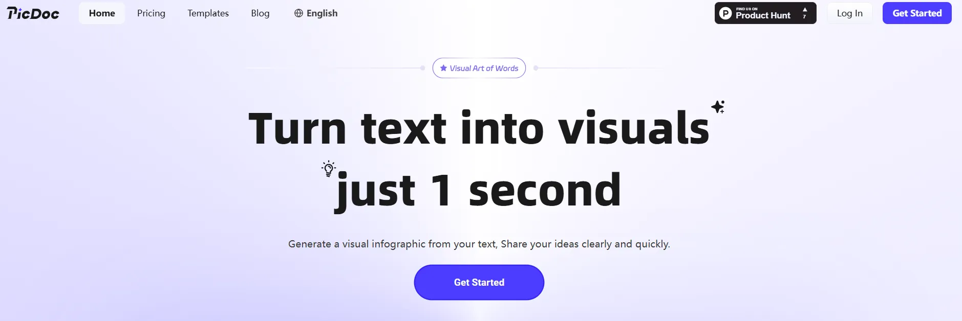 開啟PicDoc官方網站,點擊首頁上的「立即嘗試」按鈕(位置顯眼,易於尋找),進入文件產生頁面。